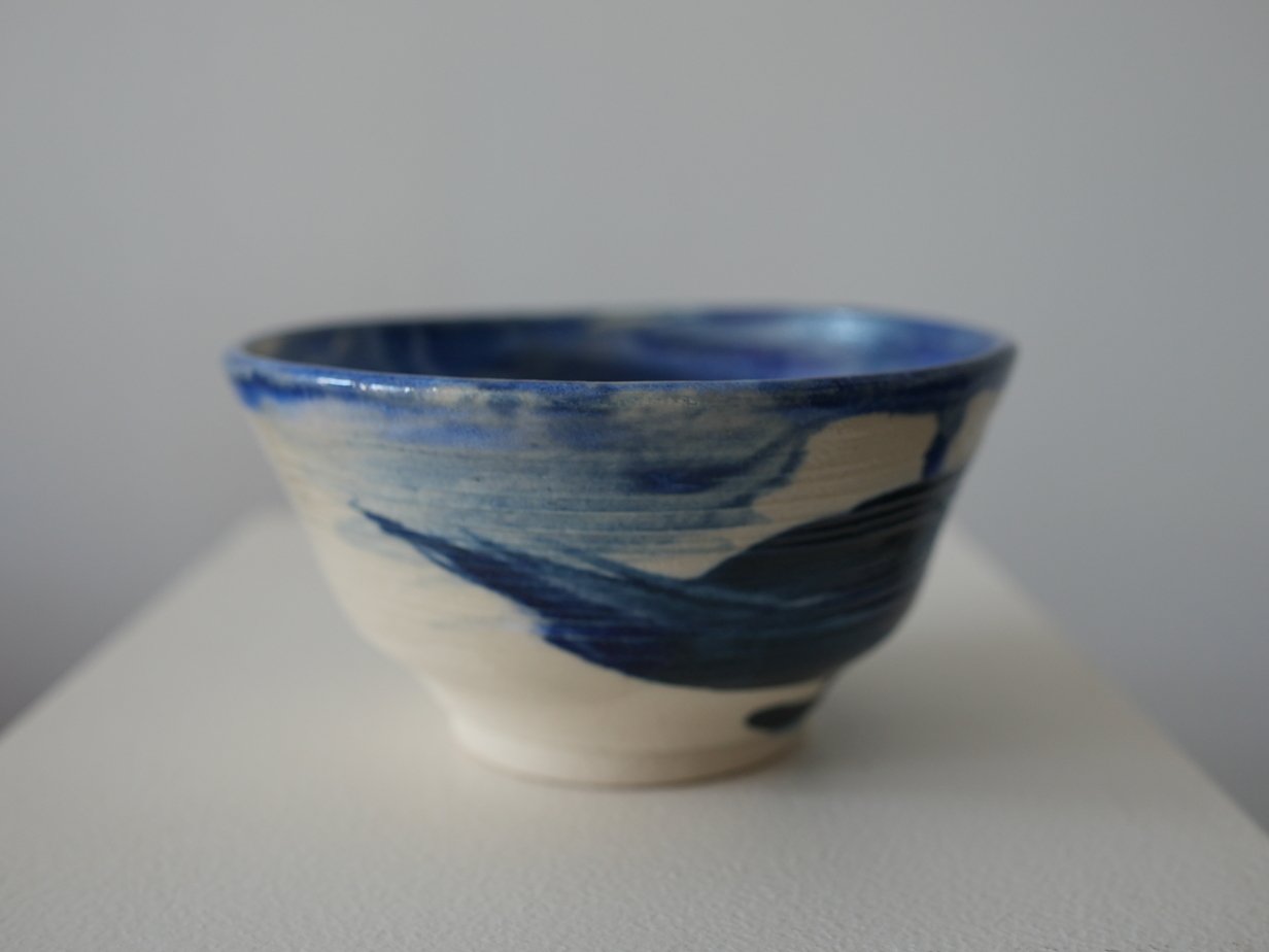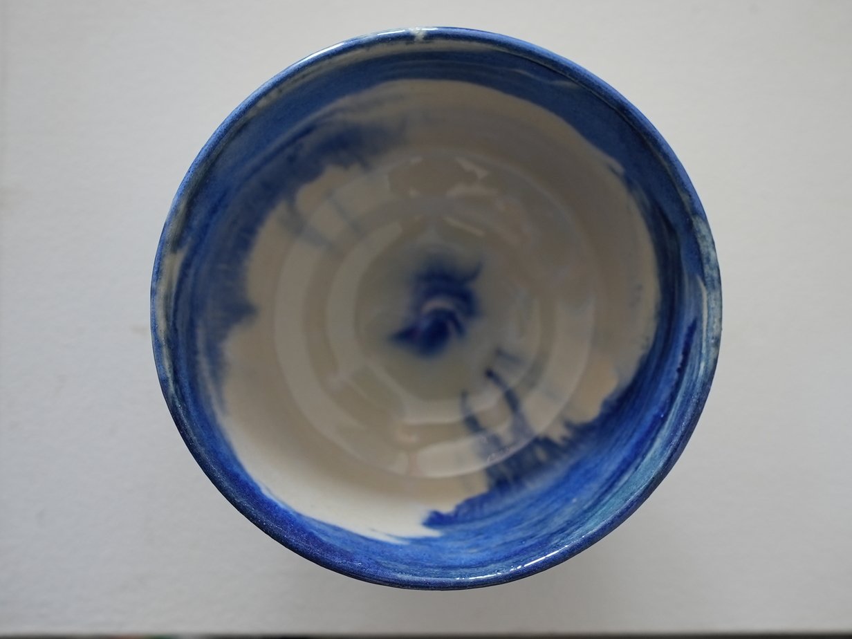 Finish: Clear glaze with subtle cobalt blue accents